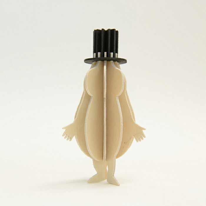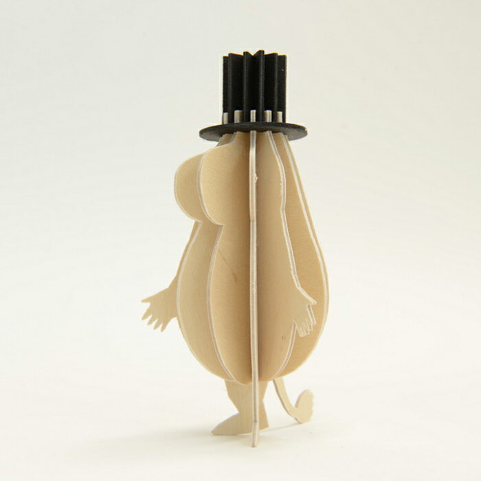 木の板からパーツを取り出し、切り込みに沿って組み立てると、洗練されたデザインのムーミンたちが出来上がり。