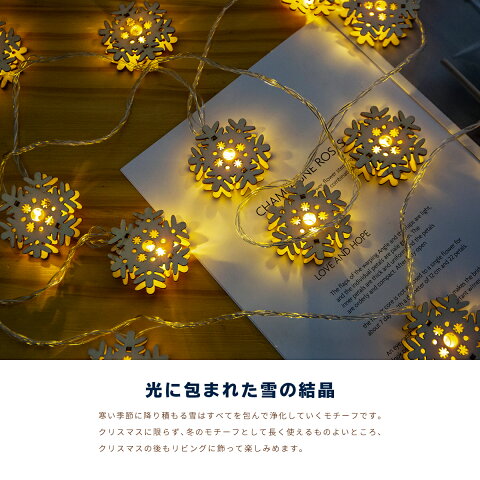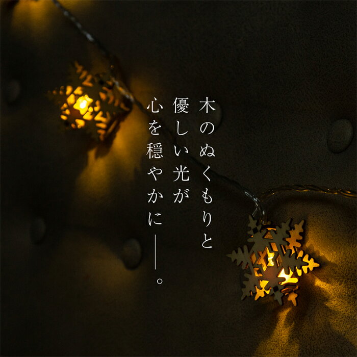 イルミネーション ライト LED 木製 ウッドモチーフ 4m 20球 おしゃれ 北欧 クリスマス 飾り付け クリスマスツリー イルミ オーナメント 雪 結晶 雪だるま スノーマン かわいい インテリアライト シャンパン ホワイト