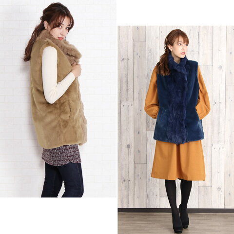 ■ lady's 女性用 れでぃーす チョッキ■ 中衣 胴着 ウェストコート vest 流行■ おしゃれ アイテム fashion もこもこ 可愛い■ outer アウターウェア 外衣 上着 outerwear キーワード:首元まで暖かいスタンドカラーのファーベスト。