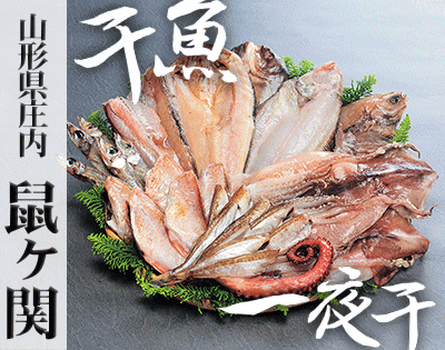 「鼠ヶ関干物セット」 ラインナップ 「7種詰め合わせ」 「8種詰め合わせ」庄内観光物産館トップ >> 海産物 >> 乾物 干物 >> 鼠ヶ関干物セット >> 7種 【山形県有数の漁港】 鼠ヶ関 〜山形県鶴岡市〜 山形県鶴岡市鼠ヶ関は、新潟県との県境に位置する漁港地帯として、特産品のイカをはじめ 様々な魚介類が水揚げされています。