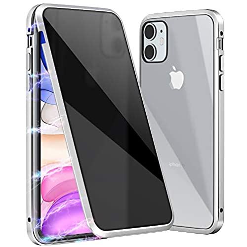 MESTRIEV iPhone 11 Pro Max ケース 覗き見防止 磁気吸着 両面ガラス 対応 360°全面保護 iPhone 11 Pro Max のぞき見防止 アルミ バンパー ケース マグネット式 磁石 磁気接続 ワイヤレス 充電対応 スマホケース 軽量 薄型 擦り傷防止 銀