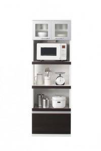 奥行41cmのモダンデザインキッチン収納◆レンジボードW60【外寸サイズ】幅60 奥行41 高さ180m【内寸サイズ】・上段オープン部分内寸幅55.5 奥行38 高さ33cm(背板あり)※1500W2口コンセント付き・中段オープン部分内寸幅55.5 奥行38 高さ32.5cm(背板なし)・下段スライド棚部分内寸幅55.5 奥行38 高さ30.5cm(背板あり)※1500W2口コンセント付き・食器収納部分内寸幅55.5 奥行38 高さ27.5cm※3cmピッチ調整、可動棚1枚付き・引出収納部分内寸幅50.5 奥行34.5 高さ30cm【製品重量】36kg【梱包サイズ/梱包重量】1梱包幅63 奥行43 高さ182cm 37kg【材質】前面:(ダークブラウン)塩ビ化粧繊維板、(ホワイト)ペット樹脂化粧繊維板側面:プリント化粧繊維板、扉:ハイグロス化粧繊維板(ホワイトのみ)、3mm厚ガラス【カラー】ダークブラウン/ホワイト【生産国】日本【完成品】※サイズ・重量は概算になります。