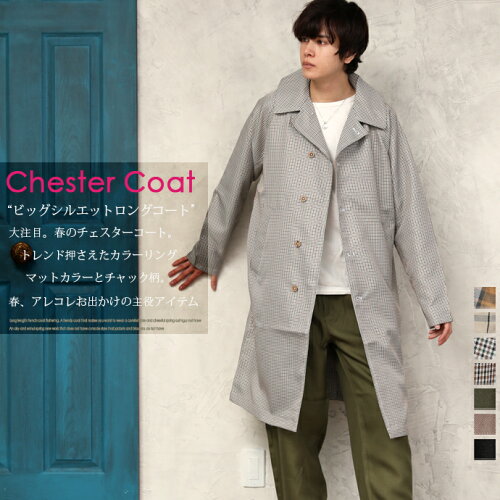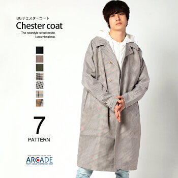 チェスターコート メンズ ビッグシルエット チェスターフィールド ロングコート チェック 無地 韓国ファッション ストリート 春物 スプリングコート ARCADE(アーケード) ssn7